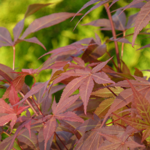 L’Acer palmatum ‘Sumi nagashi’ est un érable rustique et peu exigeant si son sol reste frais. Arrosez régulièrement, surtout les deux premières années et en été, afin de maintenir l’humidité, mais sans excès d’eau. Appliquez un paillage organique au pied pour protéger ses racines superficielles et conserver la fraîcheur du sol. La taille est rarement nécessaire : contentez-vous de supprimer les branches mortes, abîmées ou mal placées en fin d’hiver ou au tout début du printemps. Évitez les tailles sévères, qui nuisent à sa silhouette naturelle. Un apport annuel de compost ou d’engrais pour plantes de terre de bruyère au printemps soutient la vigueur et sublime la couleur pourpre intense de son feuillage.