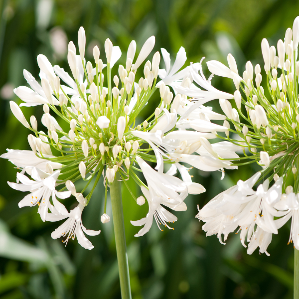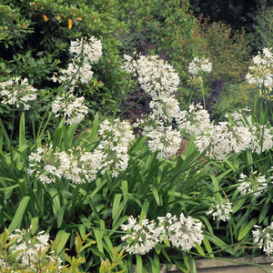 L'Agapanthe 'Thumbelina' est une variété naine d'agapanthe, originaire d'Afrique du Sud. Cette plante vivace produit des ombelles de fleurs blanches immaculées sur des tiges courtes qui atteignent généralement une hauteur maximale de 40 cm...