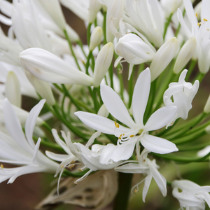 L'Agapanthe 'Thumbelina' est une variété naine d'agapanthe, originaire d'Afrique du Sud. Cette plante vivace produit des ombelles de fleurs blanches immaculées sur des tiges courtes qui atteignent généralement une hauteur maximale de 40 cm pour une largeur équivalente. Les fleurs de l'Agapanthe 'Thumbelina' sont plus petites que celles des variétés plus grandes, mais elles sont tout aussi attrayantes.