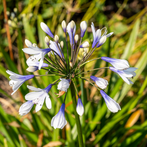 L'Agapanthe 'Twister' est une variété d'agapanthe originaire d'Afrique du Sud. Cette plante vivace se distingue par ses fleurs en forme d'ombelles sphériques qui présentent des rayures blanches et violettes, créant un motif...