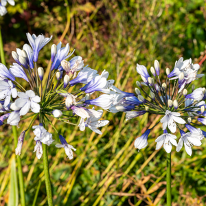 L'Agapanthe 'Twister' est une variété d'agapanthe originaire d'Afrique du Sud. Cette plante vivace se distingue par ses fleurs en forme d'ombelles sphériques qui présentent des rayures blanches et violettes, créant un motif tourbillonnant unique et attrayant. Les feuilles étroites et brillantes de l'Agapanthe 'Twister' complètent parfaitement ses fleurs élégantes.