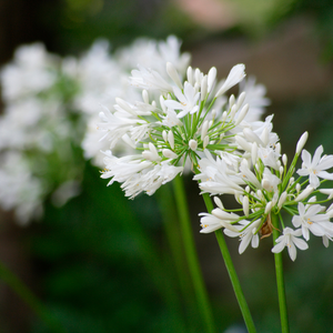 L'Agapanthe d'Afrique blanche est une plante vivace de la famille des Amaryllidaceae. Originaire d'Afrique du Sud, cette plante produit de magnifiques grappes de fleurs blanches étoilées sur des tiges dressées et rigides pouvant atteindre 60 à 90 cm de hauteur.