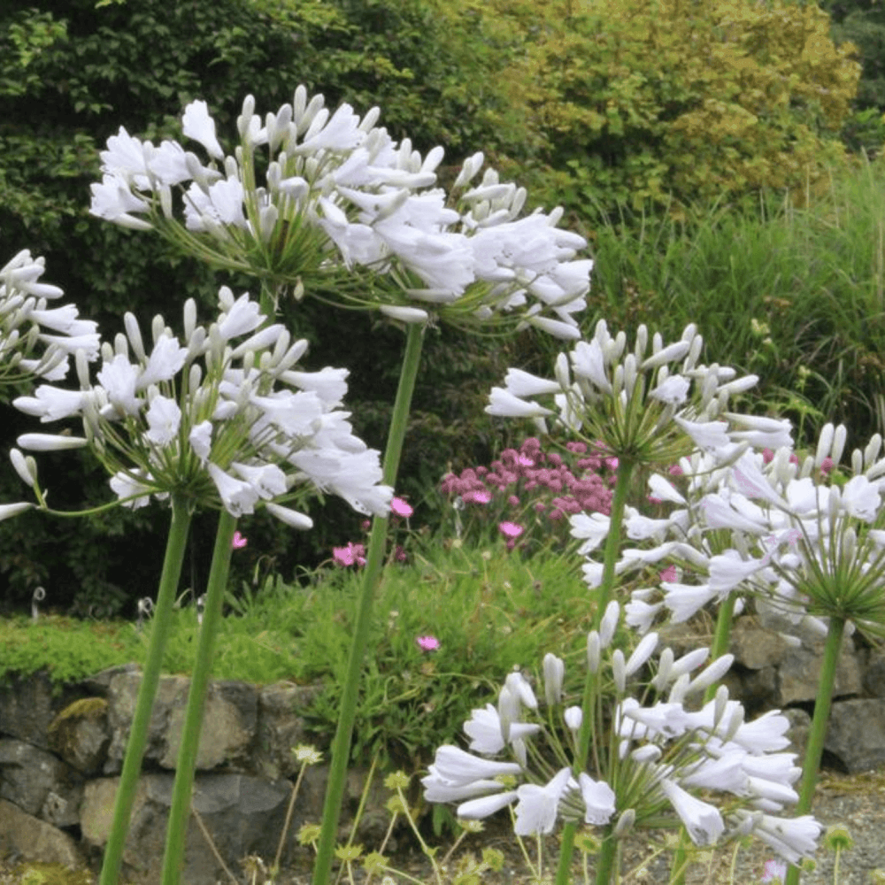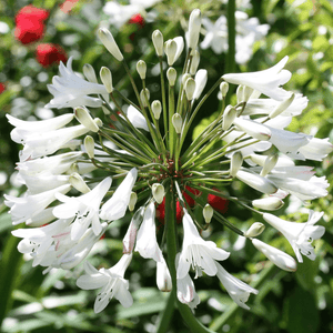 L'agapanthe 'Windsor Gray' est une plante vivace à floraison estivale qui appartient à la famille des Amaryllidaceae. Cette variété d'agapanthe est originaire d'Afrique du Sud et se caractérise par ses grandes inflorescences sphériques de couleur blanc pur. Les fleurs de 'Windsor Gray' sont réunies en grappes denses sur de longues tiges dressées qui peuvent atteindre jusqu'à 1 mètre de hauteur.