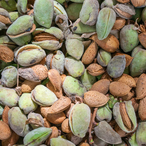 Les fruits sont enveloppés dans une coque verte veloutée qui sèche et s’ouvre en fin d’été pour révéler une amande douce et savoureuse. Parfaite à consommer crue, en pâtisserie ou transformée.
