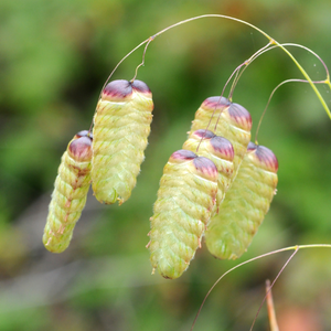 Les épis de fleurs d' amourette sont des grappes de fleurs suspendues en forme de cœur, qui ressemblent à des écouvillons et mesurent environ 10 cm de long. Les fleurs sont vert pâle à maturité, mais peuvent prendre une couleur dorée à la fin de la saison. Les tiges d'amourette peuvent atteindre une hauteur de 60 cm.