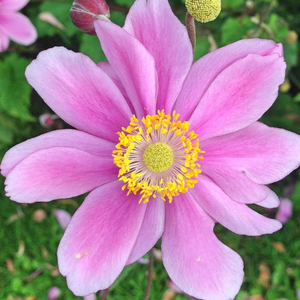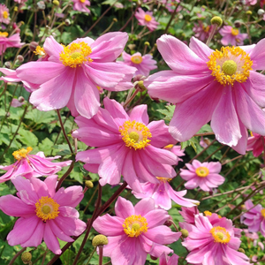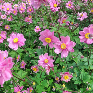 L'anémone du Japon Rubra est une plante vivace hybride de la famille des Renonculacées. Cette variété est remarquable pour ses grandes fleurs semi-doubles, rose vif, qui apparaissent en abondance en fin d'été et en automne, offrant une couleur vive et éclatante pour les jardins d'automne.