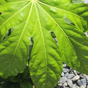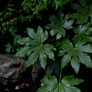 L'aralia japonica ou fatsia du japon est un arbuste proposant de grandes feuilles, vertes et persistant. Son port est étalé et arrondi ce qui en fera un arbuste idéal pour une haie ou un massif de mi-ombre.