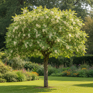 Cette variété est appréciée pour son port élégant, sa floraison abondante et décorative et son feuillage vert clair. Elle peut atteindre 15 à 20 mètres de hauteur et s’adapte parfaitement aux parcs, grands jardins et allées où elle apporte ombre et esthétisme.