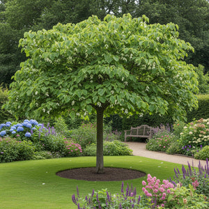 Cet arbre est apprécié pour ses fleurs blanches en forme de mouchoirs suspendus au printemps et pour son feuillage vert dense qui devient jaune à l’automne. Il est idéal en isolé dans les grands jardins ou parcs, offrant un attrait visuel remarquable et durable.