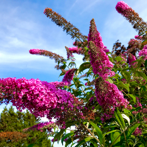 Le Buddleja davidii ‘Flutterby Red’ est un arbuste rustique et facile à entretenir. Arrosez régulièrement durant les deux premières années, surtout en été, pour maintenir un sol frais. Ensuite, il tolère bien la sécheresse. Appliquez un paillage au pied pour conserver l’humidité et limiter les mauvaises herbes. Taillez sévèrement en fin d’hiver ou au début du printemps, en rabattant les rameaux à 30-40 cm du sol, afin de stimuler la formation de nouvelles pousses vigoureuses et florifères. Supprimez les fleurs fanées au fil de la saison pour prolonger la floraison. Un apport de compost au printemps soutiendra sa vigueur. Ses longues panicules parfumées rouge magenta, très mellifères, attirent papillons et abeilles tout l’été jusqu’en automne, apportant vie et couleur au jardin.