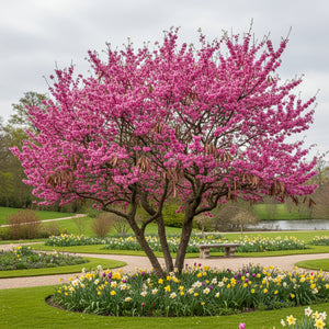 Le Cercis siliquastrum est un arbre à feuilles caduques originaire du sud de l'Europe et du Moyen-Orient, communément appelé "arbre de Judée". Cet arbre est apprécié pour ses feuilles et ses fleurs décoratives, ainsi que pour sa forme élégante.