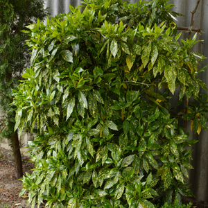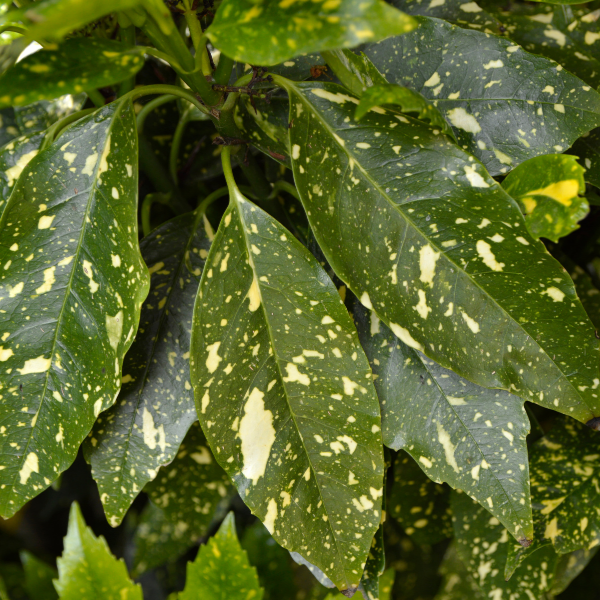 L’Aucuba japonica Variegata est un arbuste rustique, peu exigeant et très facile à entretenir. Arrosez régulièrement les deux premières années, surtout par temps sec, puis réduisez les apports une fois qu’il est bien enraciné. Un paillage au pied permet de conserver l’humidité et de limiter la croissance des mauvaises herbes. Taillez légèrement au printemps ou à l’automne si nécessaire pour équilibrer la silhouette et éliminer les rameaux abîmés. En fin d’hiver, supprimez les feuilles tachées ou abîmées pour favoriser un feuillage sain et décoratif. Un apport annuel de compost au printemps suffit à maintenir sa vigueur et la beauté de son feuillage panaché.