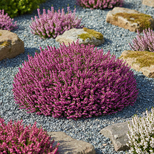 La Bruyère des neiges 'Kramer's Rote', également connue sous le nom de Erica carnea 'Kramer's Rote', est une plante ornementale à feuilles persistantes très appréciée pour sa floraison hivernale et sa croissance compacte. Cette variété pousse en forme de buisson atteignant une hauteur d'environ 25 cm pour une largeur de 60 cm et est largement utilisée comme plante ornementale dans les jardins, les bordures et les parterres.