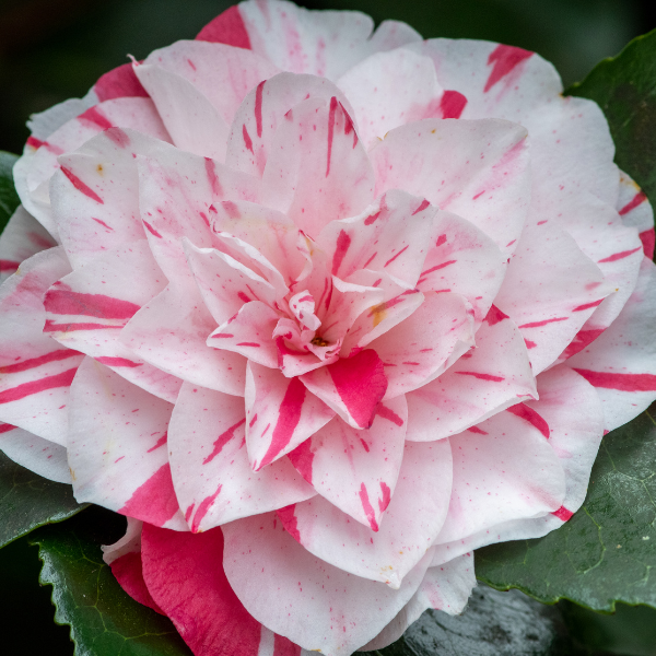 Les fleurs du Camélia du Japon 'Bonomiana' sont éblouissantes, bicolores, rose pâle striées de rose intense. comme tachetées. Elles mesurent environ 12 à 15 cm de diamètre. Elles sont disposées en grappes denses et compactes qui s'étendent sur toute la longueur des branches de l'arbuste. Les feuilles sont de couleur vert foncé, lustrées et mesurent environ 7 à 10 cm de longueur. Cette variété d'arbuste peut atteindre une hauteur de 1,5 à 2 mètres et une largeur d'environ 1,5 à 2 mètres.