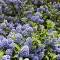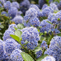 Espèce : Le ceanothe griseus est une espèce de petit arbuste au feuillage persistant et vert foncé. Les jeunes pousses sont rougeâtres. La floraison bleue soutenue se produit tout l'été et ceux dès le mois de juillet. Le nom de griseus lui vient du revers de sa feuille légèrement grisâtre.