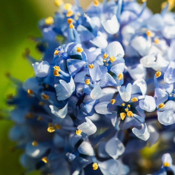 Le céanothe thyrsiflorus Skylark, également connu sous le nom de céanothe rampant Skylark, est un arbuste à feuilles persistantes originaire de la côte ouest de l'Amérique du Nord. Il pousse jusqu'à une hauteur et une largeur maximales d'environ 1 à 1,5 mètre et produit une abondance de petites fleurs bleues parfumées en grappes au printemps et parfois en été. Les feuilles vert foncé brillantes sont ovales et mesurent environ 3-4 cm de long.