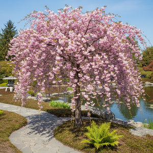 Prunus serrulata 'Kiku-shidare-sakura', également connu sous le nom de cerisier pleureur à fleurs 'Kiku-shidare-sakura', est une variété de cerisier à fleurs originaire du Japon. Comme son nom l'indique, c'est un arbre pleureur qui produit de belles fleurs roses ou blanches au printemps.