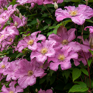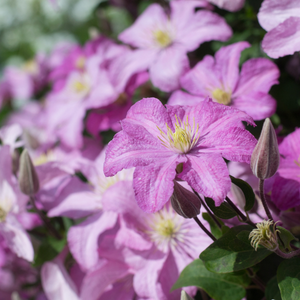 La clématite Comtesse de Bouchaud est une variété très florifère, réputée pour ses fleurs rose tendre abondantes et durables. Arrosez régulièrement la première année, puis seulement en cas de sécheresse prolongée. Paillez le pied pour garder le sol frais. Taillez-la en fin d’hiver (février-mars), en rabattant les tiges à 30-50 cm du sol : c’est une clématite du groupe 3, qui fleurit sur les pousses de l’année. Supprimez les tiges faibles ou abîmées. Un apport de compost ou d’engrais organique au printemps favorisera une floraison généreuse et prolongée.