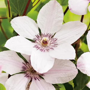 La clématite 'Jean Paul II' est une variété de clématite à grandes fleurs produisant des fleurs blanches de forme étoilée avec des étamines dorées au centre. Chaque sépale est marqué en son...