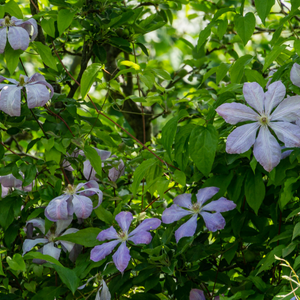 La clématite ‘Mrs Cholmondeley’ séduit par ses grandes fleurs bleu lavande délicatement veinées, qui apparaissent en deux vagues, au printemps puis en été. Elle appartient au groupe de taille 2 : réalisez une taille légère après la première floraison pour encourager la remontée, puis en fin d’hiver, supprimez le bois mort et raccourcissez les tiges principales à 50-80 cm du sol. Arrosez régulièrement en période sèche, surtout la première année. Un paillage au pied aide à conserver la fraîcheur et protéger les racines. Un apport de compost ou d’engrais organique au printemps favorise une floraison abondante et durable.
