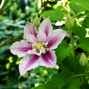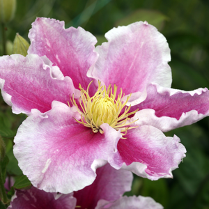 La clématite 'Piilu' est une variété de clématite hybride produisant des fleurs roses colorées de taille moyenne, d'environ 7 cm de diamètre. Les fleurs peuvent avoir jusqu'à huit pétales et une barre centrale...