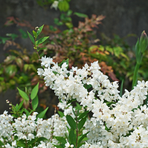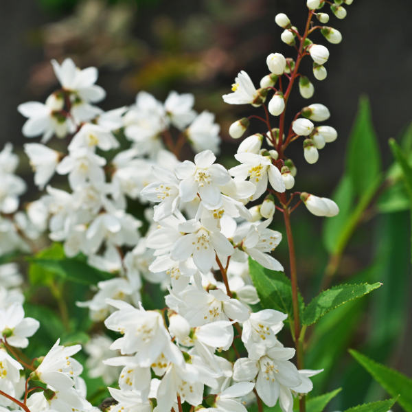 Le Deutzia gracilis ‘Nikko’ est un arbuste nain rustique et facile à entretenir. Arrosez régulièrement durant les deux premières années, surtout en été, pour maintenir un sol frais. Une fois bien installé, il tolère une certaine sécheresse, mais reste plus florifère en sol humide. Appliquez un paillage organique au pied pour protéger ses racines superficielles. Taillez légèrement après la floraison, en supprimant les rameaux défleuris et en aérant la touffe pour stimuler la production de jeunes pousses florifères. Supprimez également le bois mort au besoin. Un apport de compost au printemps soutiendra la vigueur et la générosité de la floraison. Ses grappes de petites fleurs blanches étoilées couvrent littéralement l’arbuste en mai-juin, créant un effet spectaculaire.