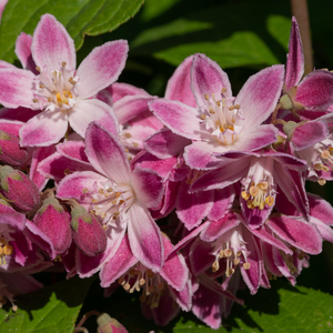 Variété : Le deutzia perle rose est un arbuste idéal pour les massifs. En effet sa floraison rose vif fait de cet arbuste un atout indispensable dans le jardin. Sa floraison a lieu de Mai à juin.