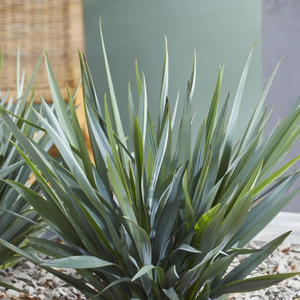 La Dianella revoluta ‘Blue Stream’ est une vivace persistante et robuste, très facile d’entretien. Arrosez régulièrement les deux premières années pour favoriser l’enracinement, puis réduisez les apports : elle supporte très bien la sécheresse une fois installée. Supprimez les feuilles sèches ou abîmées pour garder un port net. Un paillage minéral (graviers, pouzzolane) est recommandé pour protéger la souche et mettre en valeur son feuillage. Un apport léger d’engrais équilibré au printemps renforcera sa vigueur, surtout en culture en pot. Résistante au vent, à la chaleur et aux embruns, elle est idéale pour les jardins contemporains, les bordures et les terrasses, avec son feuillage bleu-vert métallique très ornemental.