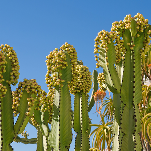 L’Euphorbia erythraea aime une exposition en plein soleil, indispensable pour assurer une bonne croissance et conserver un port vigoureux. Elle se développe dans des sols très drainants, pauvres à caillouteux, sablonneux ou rocheux. Elle redoute l’excès d’humidité : évitez absolument les terres lourdes et gorgées d’eau. En pot, utilisez un mélange spécial cactées et succulentes. Plantez-la au printemps, lorsque les températures sont douces. Si vous la cultivez en pleine terre, réservez-lui un emplacement protégé du froid, car elle n’est pas rustique sous nos climats.