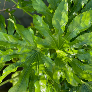 Le Fatsia polycarpa ‘Green Fingers’ est un arbuste persistant décoratif, facile d’entretien. Arrosez régulièrement les deux premières années, surtout en été, afin de maintenir le sol frais, puis réduisez les apports une fois la plante bien installée. Un paillage organique au pied permet de conserver l’humidité et protège les racines superficielles. Taillez légèrement au printemps pour supprimer les feuilles abîmées et les tiges mortes, et pour stimuler la production de jeunes pousses. Un apport annuel de compost ou d’engrais organique au printemps soutient sa croissance et la beauté de son feuillage. En climat froid, protégez les jeunes sujets avec un voile d’hivernage ou un paillage épais, car il craint les fortes gelées.