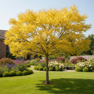 Cet arbre est apprécié pour son feuillage léger et fin, d’un jaune éclatant au printemps, devenant vert clair en été. Il possède une silhouette élancée et élégante, idéale pour les grandes allées, les parcs et les jardins spacieux.