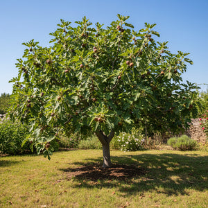 Le Figuier Brown Turkey, originaire de la Méditerranée, est une variété de figuier largement appréciée pour sa production abondante de figues sucrées et sa robustesse. Cet arbre fruitier est idéal pour les jardiniers à la recherche d'une récolte généreuse et de fruits savoureux tout au long de la saison.