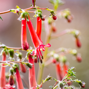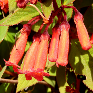 Le Fuchsia du Cap rouge clair (Phygelius capensis), est une plante ornementale vivace originaire d'Afrique du Sud. Elle appartient à la famille des Scrophulariacées et est appréciée pour ses fleurs lumineuses et sa croissance facile.