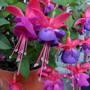 Le Fuchsia × ‘Bernisser’ nécessite des arrosages réguliers, surtout en été et en pot, afin de maintenir le sol frais, sans excès d’eau. Appliquez un paillage organique au pied en pleine terre pour garder l’humidité et limiter les mauvaises herbes. Supprimez régulièrement les fleurs fanées afin de stimuler une floraison continue. Une taille légère au printemps, après les risques de gel, permet de densifier la ramure et de favoriser de nouvelles pousses florifères. En climat froid, protégez le pied avec un paillis épais ou rentrez les pots à l’abri du gel. Un apport d’engrais liquide pour plantes fleuries toutes les 2 à 3 semaines en période de floraison assure des fleurs abondantes et durables.