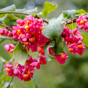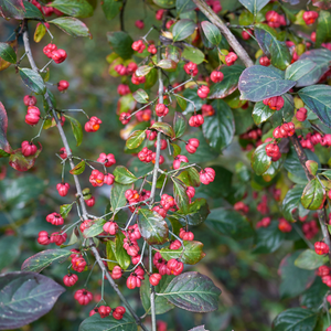 Il est apprécié pour son port arrondi, son feuillage caduc et ses fruits roses à rouges en automne. Idéal en haies libres, massifs ou isolé, il apporte couleur et structure au jardin tout au long de l’année.