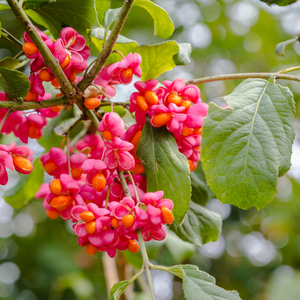 Le fusain d’Europe est rustique et demande peu de soins une fois établi. Arrosez régulièrement les deux premières années, surtout en période sèche, puis laissez-le se débrouiller seul. Un paillage organique permet de conserver l’humidité et d’enrichir le sol. La taille n’est pas indispensable, mais vous pouvez intervenir en fin d’hiver ou au début du printemps pour supprimer le bois mort, équilibrer le port ou contenir son expansion. Un apport annuel de compost ou d’engrais organique au printemps soutient la floraison discrète et la formation des fruits colorés. Attention toutefois : toutes les parties de la plante sont toxiques en cas d’ingestion, il convient donc de la manipuler avec précaution.