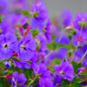 Cette variété de géranium est appréciée pour sa longue période de floraison, qui s'étend souvent de mai jusqu'aux premières gelées de l'automne. Elle est idéale pour les massifs de fleurs, les bordures ou les jardins ensoleillés à mi-ombragés. Le Géranium 'Rozanne' préfère les sols bien drainés et tolère une gamme de conditions de sol.