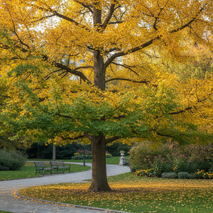 Le Ginkgo biloba, également connu sous le nom de l'arbre aux quarante écus, est un arbre remarquable et unique en son genre. Originaire de Chine, cet arbre est l'une des plus anciennes espèces d'arbres vivants, avec une histoire évolutive qui remonte à plus de 200 millions d'années. Il a une longévité impressionnante, certains spécimens ayant vécu plus de 1 000 ans.