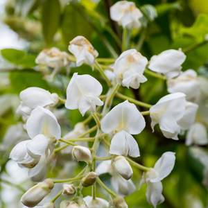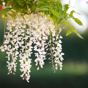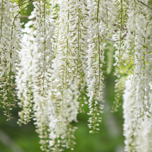 La glycine japonaise 'Alba', également connue sous le nom de Wisteria floribunda 'Alba', est une plante grimpante à floraison abondante originaire du Japon. Elle se distingue par ses magnifiques grappes de fleurs blanches de 30 à 50 cm de long. Les fleurs en forme de papillon qui apparaissent au printemps et en été mesurent environ 2 cm de longueur et ont un parfum doux et agréable.