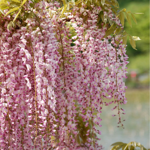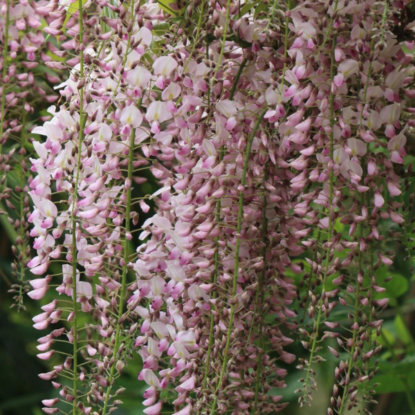 La glycine japonaise 'Rosea', également appelée Wisteria floribunda 'Rosea', est une plante grimpante à floraison spectaculaire rose tendre qui appartient à la famille des Fabaceae. Originaire du Japon, elle est très populaire dans les jardins pour ses longues grappes de fleurs rose, qui apparaissent en mai et juin. Les grappes de fleurs mesurent entre 25 et 50 cm de longueur. Les fleurs sont très parfumées et attirent les abeilles et les papillons.