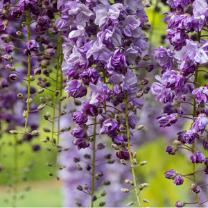 La Glycine japonaise 'Violacea Plena', également connue sous le nom scientifique de Wisteria floribunda 'Violacea Plena', est une plante grimpante ornementale populaire pour sa floraison spectaculaire et abondante. Cette variété de glycine produit des grappes de fleurs doubles en dégradé de couleur bleu clair à violet foncé qui pendent en cascade en été, créant un spectacle magnifique dans les jardins.