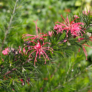 Le Grevillea ‘Canberra’ est un arbuste robuste et résistant à la sécheresse une fois bien installé. Arrosez régulièrement les deux premières années, surtout en été, puis réduisez les apports, car il préfère les sols secs. Appliquez un paillage minéral ou organique pour conserver l’humidité et protéger ses racines superficielles. Taillez légèrement après la floraison pour maintenir une silhouette compacte et stimuler la ramification, en évitant les coupes trop sévères. Dans les régions froides, protégez-le des fortes gelées avec un voile d’hivernage. Un apport d’engrais spécifique pour plantes australiennes (pauvre en phosphore) au printemps peut soutenir sa vigueur et sa floraison.