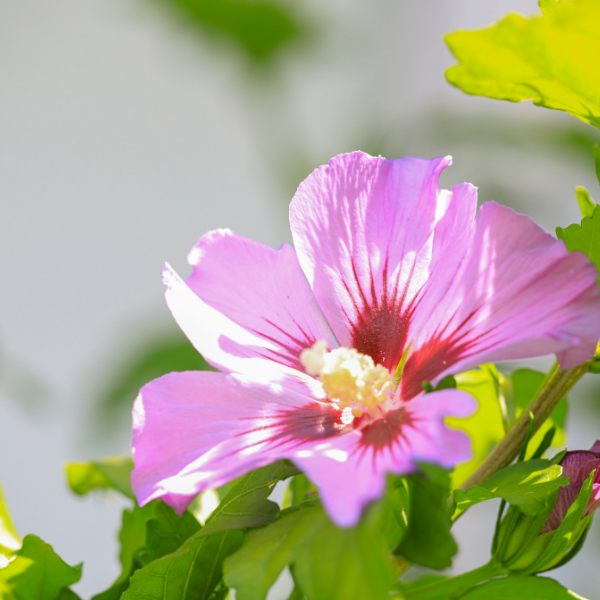 L’Hibiscus syriacus Woodbridge est rustique et facile à entretenir. Arrosez régulièrement durant les deux premières années, surtout en été, puis uniquement en cas de sécheresse prolongée. Un paillage organique au pied conserve l’humidité et limite les mauvaises herbes. Taillez légèrement en fin d’hiver ou au début du printemps pour supprimer le bois mort, équilibrer la ramure et stimuler l’apparition de nouvelles pousses florifères. Un apport annuel de compost ou d’engrais organique au printemps favorise la vigueur et assure une floraison généreuse, avec ses grandes fleurs simples rose vif à cœur rouge carmin qui s’épanouissent de juillet à septembre.