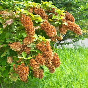 Hortensia à feuilles de chêne 'Alice' est une variété d'hortensia ornementale très appréciée pour son feuillage décoratif et sa floraison abondante. Cette plante est originaire d'Amérique du Nord et appartient à la famille des Hydrangea. Les feuilles de Hortensia à feuilles de chêne 'Alice' sont de forme lobée et ressemblent à celles du chêne, d'où son nom. Le feuillage est d'un vert foncé et vire au rouge orangé en automne.
