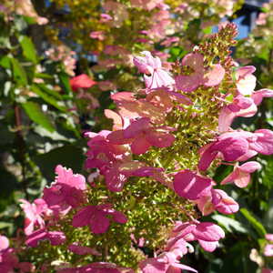 L’Hydrangea paniculata ‘Magical Vesuvio’ est un arbuste rustique et facile à cultiver. Arrosez régulièrement en été et durant la floraison pour maintenir le sol frais, sans le détremper. Un paillage organique au pied aide à conserver l’humidité et protège les racines superficielles. Taillez en fin d’hiver ou au début du printemps : rabattez les rameaux d’un tiers afin de stimuler la formation de nouvelles pousses florifères et supprimez le bois mort. Un apport annuel de compost ou d’engrais spécial hortensias au printemps renforce sa vigueur et sa floraison. Ses panicules spectaculaires passent du blanc au rose puis au rouge carmin au fil de la saison, apportant une touche éclatante au jardin.