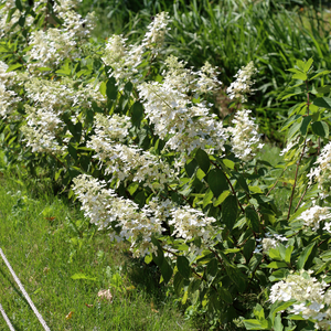 L’Hydrangea paniculata ‘Magical Himalaya’ est un arbuste rustique et facile à vivre. Arrosez régulièrement pendant l’été et en période de floraison afin de maintenir un sol frais, sans excès d’eau. Appliquez un paillage organique au pied pour limiter l’évaporation et protéger les racines superficielles. Taillez en fin d’hiver ou au début du printemps : rabattez les rameaux d’un tiers pour stimuler la formation de nouvelles pousses florifères et supprimez le bois mort. Un apport annuel de compost ou d’engrais spécial hortensias au printemps renforcera la vigueur et la beauté de sa floraison. Ses grandes panicules blanches, denses et lumineuses, évoluent vers des teintes crème puis légèrement rosées en fin de saison, offrant un spectacle éclatant et raffiné.