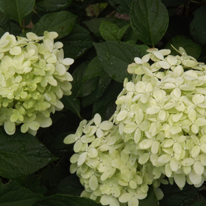 L’Hydrangea paniculata ‘Skyfall’ est un arbuste rustique et facile d’entretien. Arrosez régulièrement durant les périodes sèches, surtout en été, pour maintenir un sol frais, mais évitez l’excès d’eau stagnante. Appliquez un paillage organique au pied afin de protéger les racines superficielles et limiter l’évaporation. Taillez en fin d’hiver ou au début du printemps : rabattez les tiges d’un tiers pour stimuler la production de nouvelles pousses florifères et supprimez le bois mort. Un apport de compost ou d’engrais spécial hortensias au printemps renforcera la vigueur et la richesse de la floraison. Ses grandes panicules denses, aux fleurs blanc crème virant au rose tendre à mesure qu’elles mûrissent, rappellent les jacinthes et offrent un spectacle spectaculaire du milieu de l’été jusqu’à l’automne.