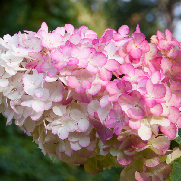 Hortensia paniculé 'Vanille fraise'® est une variété d'hortensia ornementale très appréciée pour sa floraison abondante de grandes inflorescences coniques qui évoluent du blanc pur au rose puis au rouge à maturité, évoquant...