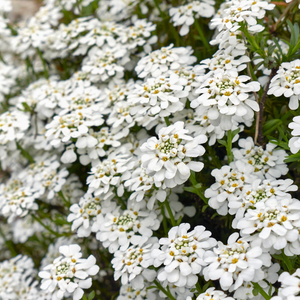 La Corbeille d'argent, également appelée Iberis sempervirens, est une plante vivace originaire des régions montagneuses d'Europe et d'Asie. Elle appartient à la famille des Brassicacées et se caractérise par ses petites fleurs blanches en forme de croix, qui apparaissent en abondance au printemps et en début d'été.