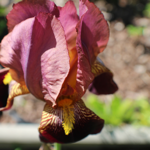 L'Iris des jardins 'Indian Chief' est une variété d'iris barbu appréciée pour ses grandes fleurs rouge foncé, presque noir, qui ajoutent une touche dramatique au jardin. Cette plante vivace peut atteindre une hauteur de 60 à 90 centimètres et produit des fleurs de forme classique, mesurant jusqu'à 15 centimètres de diamètre. Les fleurs sont d'un rouge sombre, presque noir, avec des pétales ondulés et une barbe orange foncé sur les pétales inférieurs. La floraison a lieu au printemps et peut durer jusqu'à trois semaines, avec des fleurs s'épanouissant successivement tout au long de cette période. Cette variété d'iris préfère un sol bien drainé et une exposition ensoleillée à mi-ombragée.